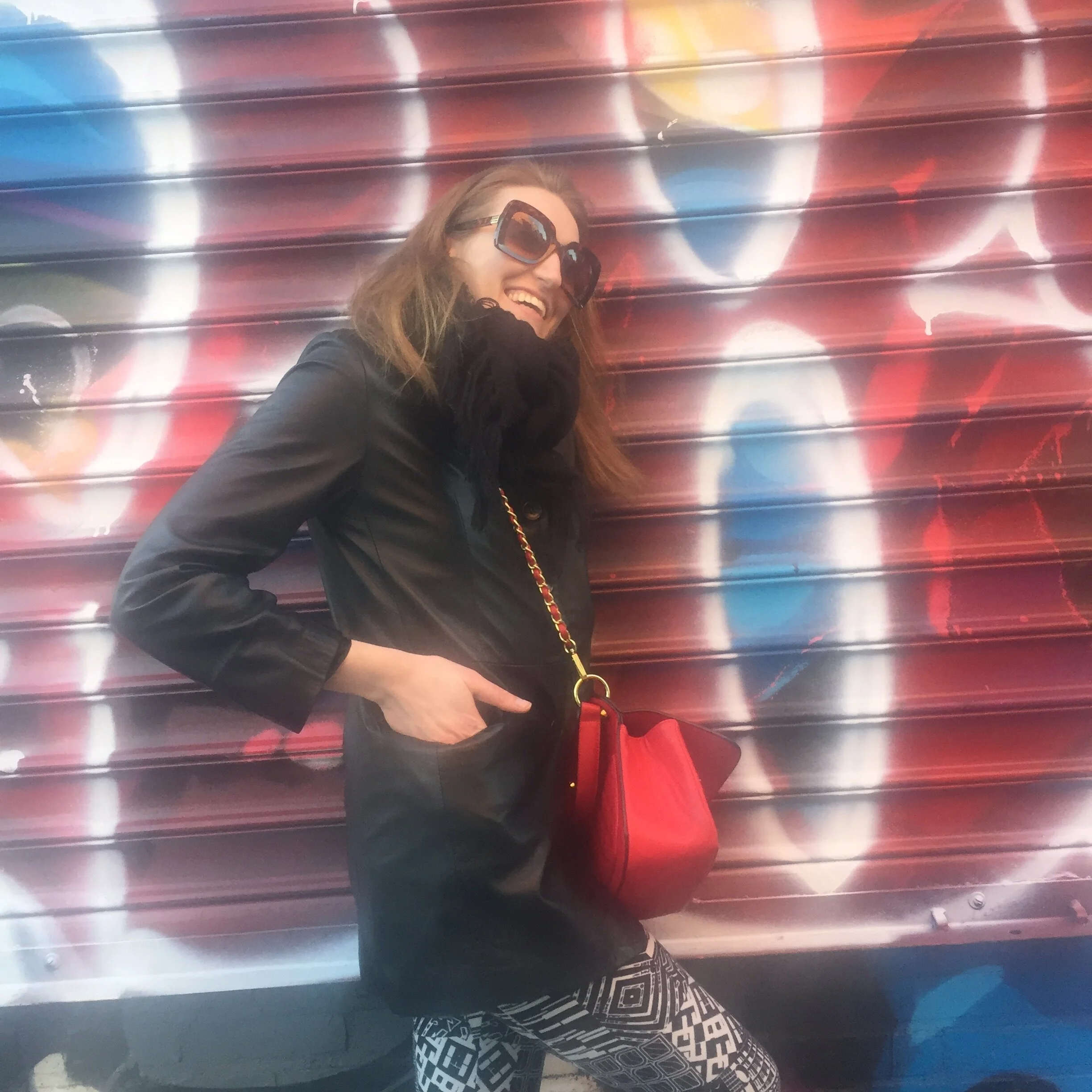 Salem really liked the color contrast that this green door created in relation to my outfit, but personally I have to say that I am more of a fan of the graffiti photo.